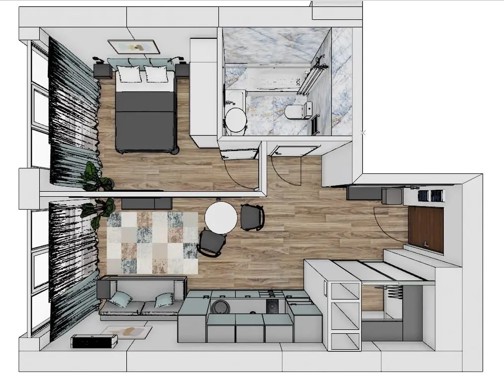 РЕМОНТ ОДНОКІМНАТНОЇ КВАРТИРИ ПІД ОРЕНДУ 23-25 000€ за 44 м²